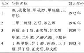 表2 日本惡臭防止法列入控制的22種惡臭污染物![]() |