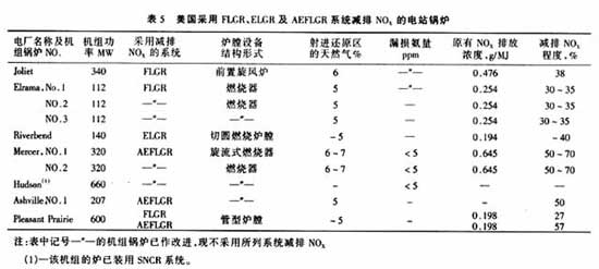 在Mercer熱電廠(PSE&G電力公司)NO.1,NO.2機組上應用該法;Mudson熱電廠NO.2爐凝用;Plesant Prairie(Wisconsin Electric Porer公司)NO.1爐作了工業性示范試驗。應用AEFLGR法脫硝結果見表5。