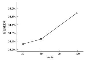 ![]() 圖3 原始電鍍污泥在管式爐相同終溫不同停留時間下焚燒的減重率(900 ℃,空氣氣氛) |