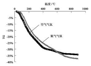 ![]() 圖5 電鍍污泥不同氣氛下熱重實驗結果 |