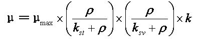 μ1=5KgCOD/KgMLSS.d×(300/(3200+300))×(300/(532+300))×0.85