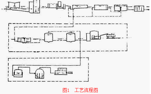 針對上述出水要求,通過試驗研究,選用先進的缺氧好氧活性污泥法,延長曝氣時間,使出水完全硝化;污泥處理采用兩級中溫硝化工藝;沼氣用以發電,補充能源;發電機的冷卻水供消化池加熱;回用水的深度處理,增加混凝沉淀和砂濾,使出水水質進一步提高(圖1)。