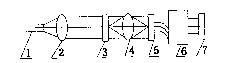 圖3 粉塵濃度測量裝置示意圖 1.半導體激光器及其空間濾波器 2. 準直透鏡 3. 被測粉塵 4.付里葉透鏡 5.多元光纖分布板 6. 光電檢測器 7. 計算機 |