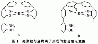 Muzzarelli認為,殼聚糖和金屬離子通過3種形式發生結合,即離子交換、吸附和螯合。例如鈣離子交換是占優勢的過程,而其他金屬離子則是以吸附和螯合為主。