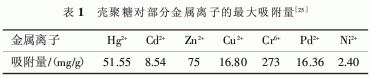 殼聚糖對部分金屬離子的最大吸附量見表1。
