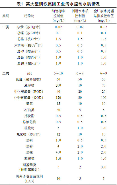 表1是某大型鋼鐵集團工業污水控制水質表。進入鋼鐵廠干管的各單元工業污水應達到納管水質標準,否則應在單元內進行預處理。