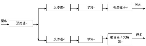 (1)反滲透+電去離子脫鹽系統