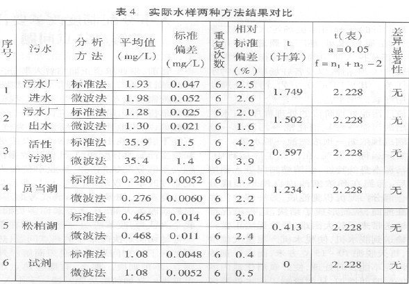 4.1通過精密度、準確度對比實驗,數據表明,微波消解法是快速測定總磷的有效方法。方法簡便,快速易操作,有較好的精密度和準確度。