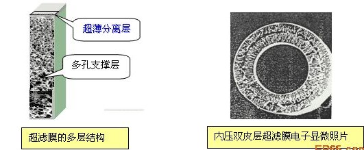 超濾膜屬于非對稱的結構,即包括致密的皮層(真正起分離作用)和多孔的支撐層。這種結構既保證了良好的分離效果,又提高了膜通量,降低運行能耗,并抗污堵。這些因素使得膜產品最終能夠實現大工業化的應用。目前在青島、山西等地多個熱電廠的鍋爐給水系統中已經成功采用超濾做為反滲透的預處理。