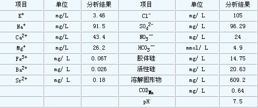 試驗原水為經自來水廠處理的黃河水,取自金雞嶺熱源廠化水車間生水池。其主要水質指標如下: