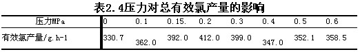 2.4 壓力對有效氯產量的影響
