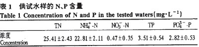 空心菜(Xpo。,oea aquatica)和水芹(Oenanthe javanica)均來自當地,在供試水體中預培養2周后選取生長良好并均勻一致的植株用于本試驗。供試水樣為宜興市大浦鎮林莊河河水。并添加了一定量的碳酸氫銨和磷酸二氫銨,其N、P含量見表1。