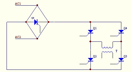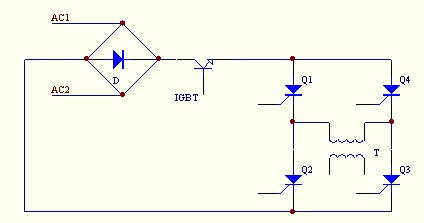 中型臭氧發生器的控制系統是一個“交流—直流—交流”的過程,它利用二極管整流,整流后經過電流電壓的調整,再通過可控硅逆變,最后升壓供給臭氧放電室。系統主電路圖如下所示: