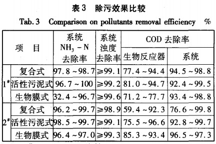 從表3可知,三種一體式膜生物反應器對氨氮、濁度和COD的去除率都很高,但生物反應器去除COD的效果相差較大,相比較而言活性污泥一膜生物反應器的去除效果更穩定些。