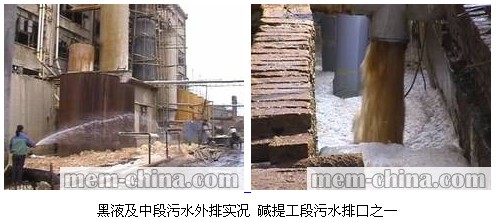 黑液及中段污水外排實況 堿提工段污水排口之一