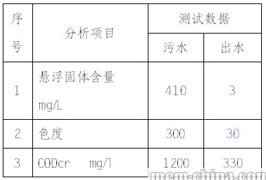 從以上水質測試的數據表中可以看出,經SPR污水凈化系統處理后,出水中懸浮物含量能降到3毫克/升以下;色度降低到 30倍以下,CODcr降到330毫克/升。