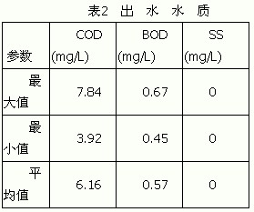 調節池主要設計參數:有效水深為2.5 m;有效容積為48.7 m3;HRT為19.5 h。