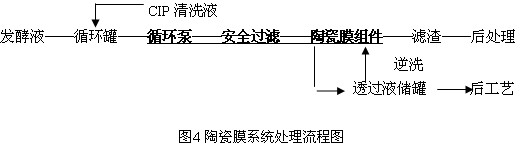 陶瓷膜系統處理流程工藝如圖3,設備流程示意圖如圖4。