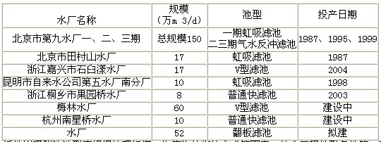 目前歐洲各國有300多家水廠采用翻板濾池,我國僅在昆明市自來水公司第七水廠(掌鳩河水廠)的砂濾池采用翻板濾池,該濾池現已竣工,目前尚未通水。
