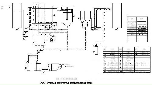 污水回用處理裝置系統如圖1所示,占地約20m2,污水水源為上海建科院莘莊園區包括環境實驗樓在內的幾棟建筑的全部建筑污水和部分幕墻測試中心的沖墻排水及雨水,設計承擔處理水量為20m3/d。