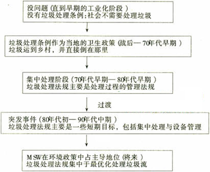 在 20世紀初到50年代的歐洲,垃圾管理一直只局限于環境衛生方面,并且只限于人口密集的城鎮地區,主要由地方政府自愿承擔垃圾處理工作。所涉及的范圍也很窄,并且不包括工業垃圾。在隨后的發展中,一些法規和屢屢出現的“事故”推動著垃圾管理體制的發展。在這過程中,歐洲各國逐步完善各自的管理體制,找出了一些有效的方法來管理垃圾。如運用經濟杠桿刺激垃圾處理市場的發展,積極尋求與本國民間組織的合作,加強非政府組織在垃圾管理中的作用等等。這些措施的實施,基本解決了開始時出現的問題。80年代以后,隨著包裝垃圾的增加,歐洲各國著重加強了包裝垃圾的處理,并制定了一系列法規。