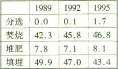 然而,法國的法規存在一個明顯的缺點:太強調焚燒處理,忽略回收再生和堆肥,這種傾向主要是由制度造成的(表1)。到1997年底,公共部門所采用的處理技術中,焚燒占了主導地位。法規體系中希望發展一種新的能量回收技術,結果卻導致了原來占優勢的技術發展更快。