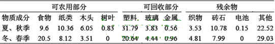 (4)垃圾成分分析:四分法取樣;風干后,105℃烘干分析。