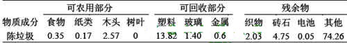 表1阿蘇衛2001~2003年新鮮垃圾平均組成(干基)w/10-2