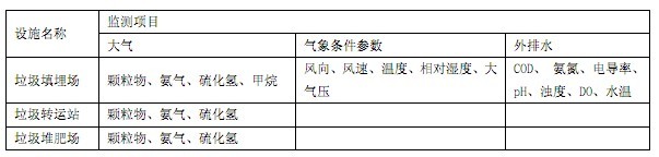 第三 ,要根據設施作業過程中實際污染物產生情況、定期環境監測情況確定環境監測項目的最終選擇結果。如氮氧化物、二氧化硫在垃圾轉運、填埋等過程中產生量非常之少,因此沒有選擇作為生活垃圾處理設施在線環境監測項目 ,而選擇作業過程中產生并與設施臭氣污染密切相關的氨氣、硫化氫作為監測項目。經認真分析,一般城市生活垃圾處理設施在線環境監測內容及監測項目。見表 2。