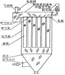 ![]() 圖1 高壓脈沖袋式除塵器示意 |