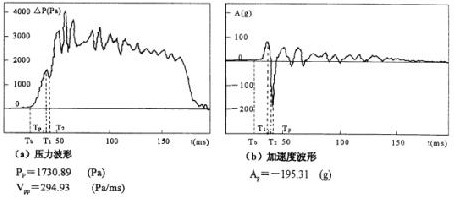 ![]() 圖4 菱形扁袋除塵器濾袋內壓力波形和加速度波形圖 |