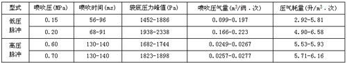 表1 低壓和高壓脈沖噴吹裝置的性能