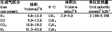 表1熱分解生成氣組分及發熱量