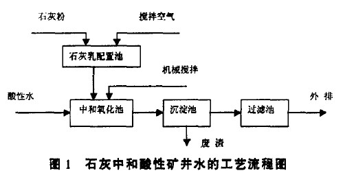 目前,煤礦酸性水主要采用石灰中和劑進行處理,某煤礦采用石灰中和法處理酸性水的工藝流程如圖1所示。