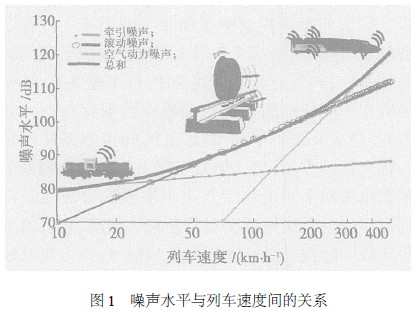 軌道交通噪聲對環境的影響日益受到人們的普遍關注,特別是在當前高速鐵路技術發展迅猛的情況下,隨著行車速度的提高,噪聲水平迅速提高,如圖1 所示。國內外一些研究資料表明[1-2]:在不同速度條件下,滾動噪聲是鐵路噪聲輻射的主要來源,而鋼軌振動噪聲在輪軌滾動噪聲中又居主要地位,車輪次之。由于噪聲與振動在500~2000 Hz 頻率范圍內線性相關,且鋼軌在此范圍內是主要輻射體,因此,抑制鋼軌振動、減小鋼軌的振動加速度和頻率,對降噪起著關鍵作用。在許多工業發達國家,經過多年的研究積累,已經形成較為完整的軌道交通噪聲測試、評價、控制及整治機制。而我國學者雖也對此進行了一些研究,提出并采取了一些措施[3-8] ,輪軌噪聲有所降低,但隨著我國高速客運專線的建設,由于輪軌噪聲對車速有較強的依賴性,其聲級將愈來愈大,有待于進一步研究。