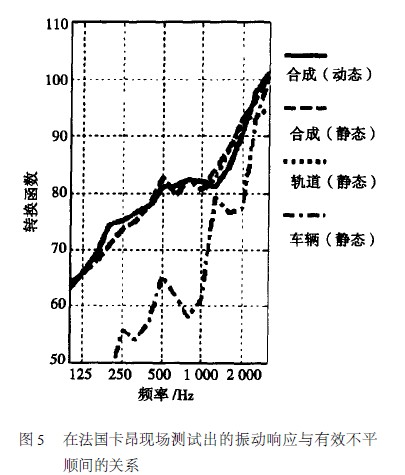 若車輛使用低噪車輪, 如大阻尼、橫截面優化輪對或彈性車輪以及車輪穿孔等,則整體轉換函數將近似等于軌道轉換函數。這時, 可通過合成有效不平順與軌道轉換函數而得到軌道在整體噪聲中所起到的作用: