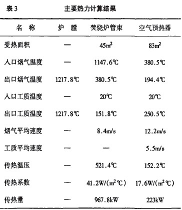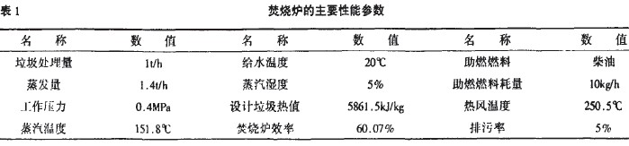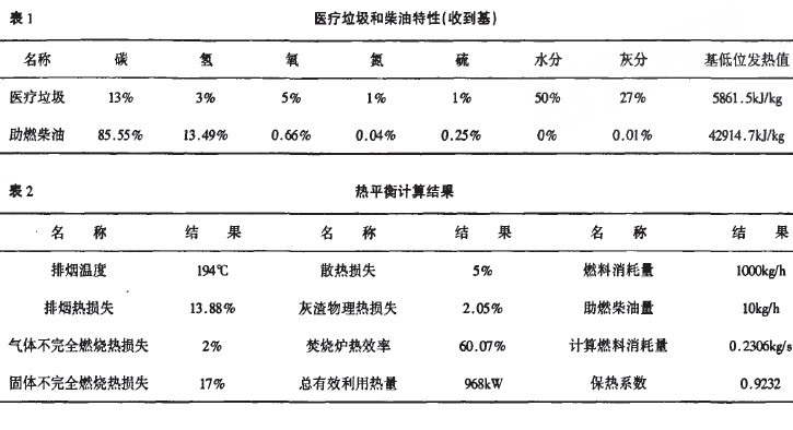 醫療垃圾和柴油特性見表1。熱平衡計算結果見表2;主要熱力計算結果見表3。
