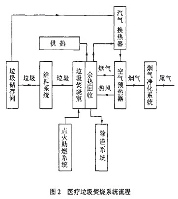 (2)醫療垃圾焚燒系統包括垃圾儲存間、給料系統、煙氣凈化系統、點火助燃系統、除渣系統等。