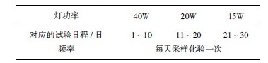 試驗過程中使用了15 W、20 W、40 W共3種不同功率的紫外燈,實測強度分別為1 875 μW/cm2、2 500 μW/cm2、5 000 μW/cm2。紫外消毒器為管道式紫外燈。紫外消毒器的長度H=865 mm,外殼內徑61 mm,內套管外徑是24.5 mm,截面積S 是24.5 cm2。如果紫外燈照射水體的時間為Y,那么: