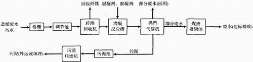 出水水質滿足回用標準。雙層濾料的反粒度過濾工藝(待濾水從底部的粗顆粒濾料層進,從頂部細濾料層出)在山東雙興紙業廢水深度處理中得到應用。用混凝和砂濾對生化后的造紙廢水進行深度處理,可以明顯降低廢水的污染程度 。回收纖維混凝劑、助凝劑 部分廢水(回用)在新型混凝劑的開發方面,微生物絮凝劑(MBF)作為一種能夠自然降解的新型絮凝劑,目前已應用于造紙廢水處理并取得良好的效果 。粉煤灰、硅藻土等礦物質制成的混凝劑也開始應用于水處理領域。據報道,于衍真等 制備的粉煤灰混凝劑,效果明顯優于傳統混凝劑。在混凝劑的改性與復配方面,潘碌亭等 采用氧化偶合絮凝法處理中段水,結果表明,在改性鋁鹽與鈣鹽質量比2:1、總加入量150 mg/L、pH 7~8、反應時間20 min的條件下,COD去除率達85% 。石中亮等 進行了復合凈水劑處理造紙廢水的實驗,當在50 mL廢水中加入1.00 mL質量分數為1% 的殼聚糖醋酸溶液和1.25 mL質量分數為1%的硫酸鋁溶液時,COD去除率達82%。江霜英等的研究表明,聚合雙酸鋁鐵與有機高分子絮凝劑復配使用時經濟有效。Petzold等 和李爾等的類似研究表明兩種及兩種以上混凝劑處理廢水的效果優于單混凝劑,有機和無機混凝劑復配更為有效。天然有機高分子絮凝劑易失去活性、有機合成高分子絮凝劑殘留單體有毒等限制了它們在水處理領域的發展,經過改性的天然高分子絮凝劑能克服以上缺點,其中淀粉改性絮凝劑的研究尤為引人注目。