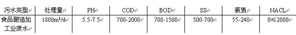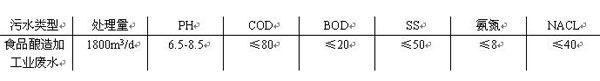 污水性質:食品釀造加工業廢水,原水質檢測數據:(根據甲方提供水樣并參照同行業廢水相關水質規定)