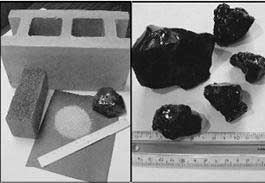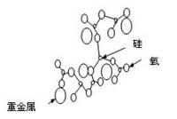 玻璃化將廢物與玻璃等物質混合在熱等離子體的高溫作用下熔融形成一種穩定的玻璃態物質,原廢物中的有害金屬則包封在玻璃體中,即可達到穩定化、減量化及資源化目的。玻璃化最初是用來處理放射性廢物,在這個過程中高放射性廢物的液體和泥漿與玻璃顆粒進行混合并加熱到非常高的溫度來產生熔融玻璃態混合物,當混合物冷卻時它就會變為一種堅硬且穩定的玻璃體,這種玻璃體將放射性元素包封在內部,并阻止其遷移到水和大氣中。一般其反應機制是利用SiO2網絡結構形成難溶物質,見圖3。一般可從玻璃體的特性探討其處理效果,其特性項目包括灼燒減量、強度、空隙率、浸取毒性等。得到的玻璃體經過一定的或者不經過加工可以用來作為建筑材料或者陶瓷材料,這依賴于所處理的廢物的化學成分。圖4為美國IET公司經過PEM技術處理得到的玻璃體和用玻璃體加工的建筑材料。