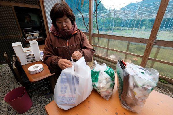 在日本德島縣上勝町,當地居民把自己家的垃圾進行分類。(法新社)