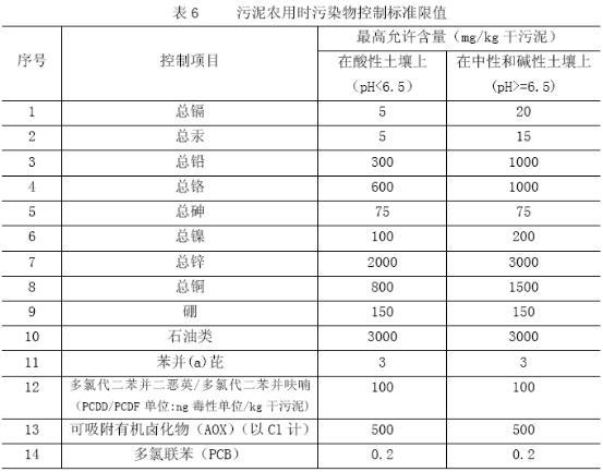 4.3.4 處理后的污泥農用時,其污染物含量應滿足表6 的要求。其施用條件須符合GB4284 的有關規定。
