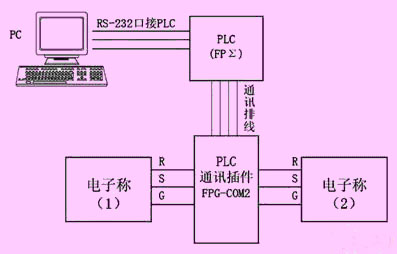 (2)plc。控制各氣缸的動作、閥門的開關;有3個通訊端口,1個與計算機通訊,另外2個分別與2臺電子稱的通訊。