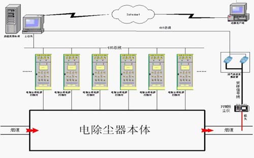系統由NDE靜電除塵器、DKZ-2電除塵器電源及控制裝置、DCC2000靜電除塵器自動監控系統和YLJ2000煙氣在線連續監測系統構成。