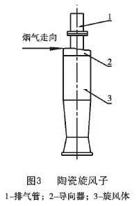 陶瓷旋風子的材料非常重要, 根據工藝要求,可以分為精瓷材料和普通陶瓷材料兩種。使用溫度在500℃以下, 可以選用普通陶瓷材料燒制的陶瓷旋風子; 使用溫度在500℃以上, 則應選用精瓷材料, 精瓷材料最高使用溫度可達到850℃。