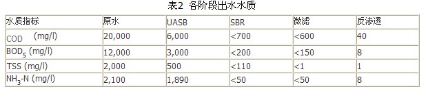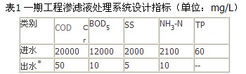 滲濾液進水水質和出水水質采用采用表1中的參數。