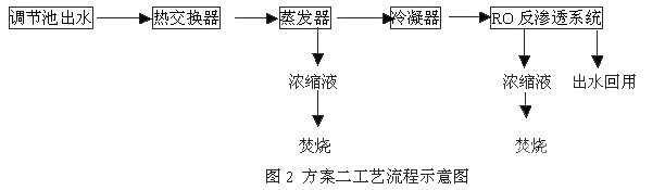 蒸發器底部所收集的濃縮液及RO濃縮液用循環泵輸送入濃縮液冷卻器對進水進行預熱,冷卻后的濃縮液進入焚燒爐焚燒。
