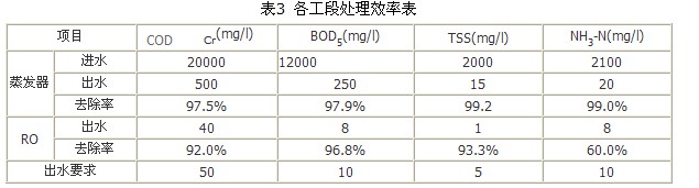 經蒸發處理的滲濾液進入RO反滲透系統,RO系統采用寬幅螺旋卷式復合膜,設計最大工作壓力為35Bar,最大回收率為80,清洗周期為1~2星期,預期膜的工作壽命為1~2年。RO出水可直接進行回用。
